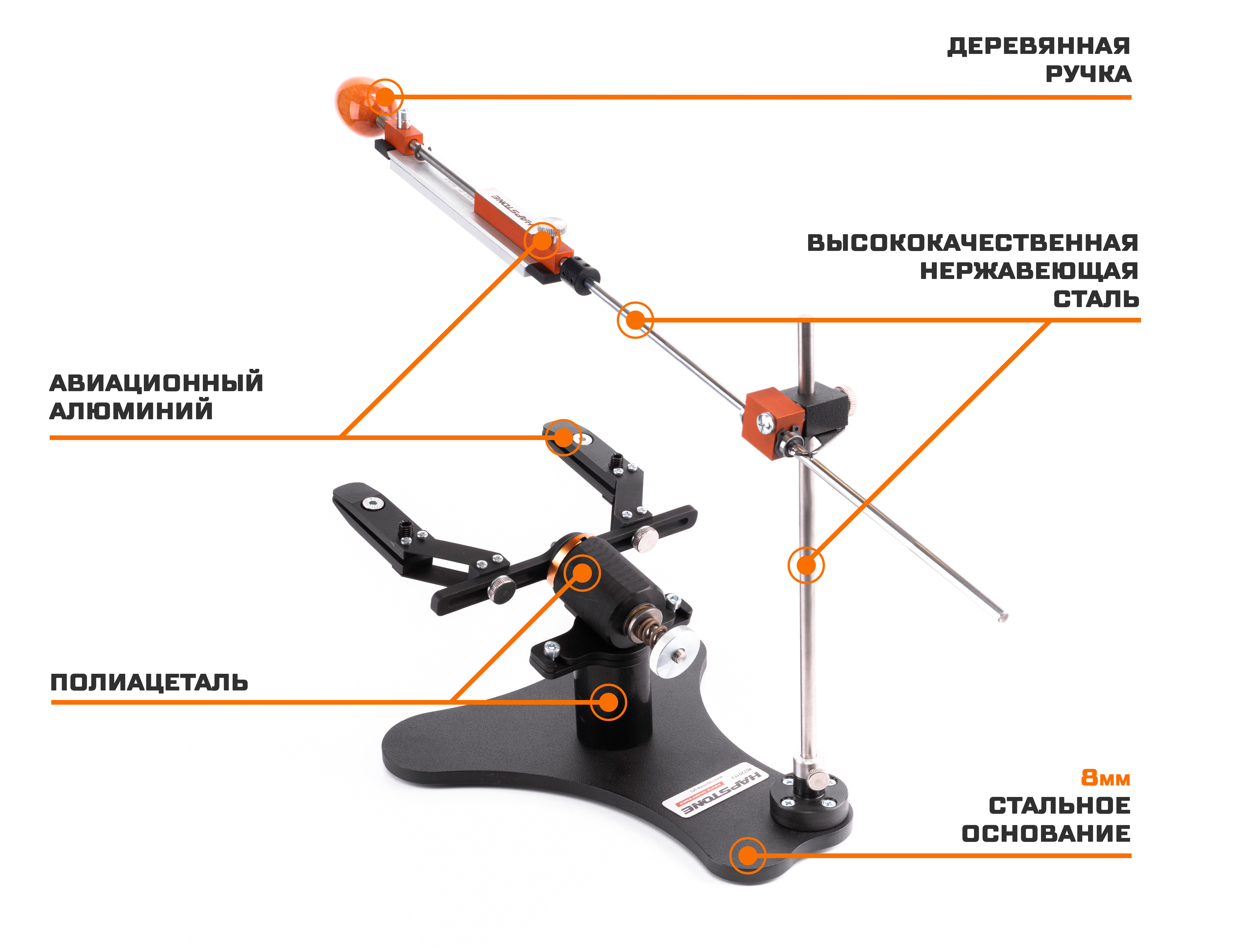 Hapstone R2 Standard — это заточная система на базе модульной платформы Hapstone. Оснащена поворотным механизмом нового поколения и укомплектована универсальными зажимами для ножей с тонким и средним обухом. На устройство предоставляется 5 лет гарантии, что подтверждает его надёжность и поддержку со стороны производителя на весь срок эксплуатации.