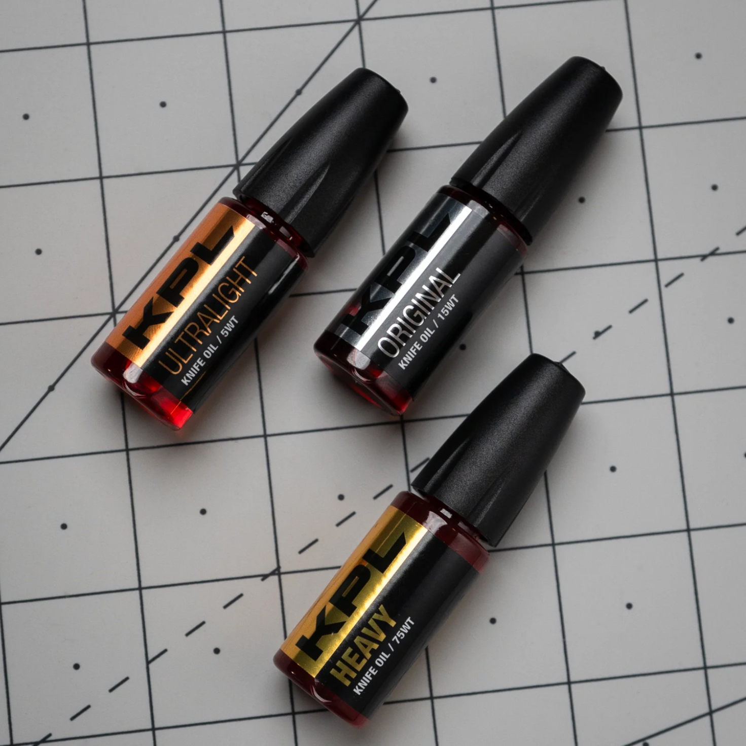 KPL Triple Combo Pack включает все три фирменные лубриканты KPL — Ultra-Lite (5 WT), Original (15 WT) и Heavy (75 WT). Каждый из них — полностью синтетическая смазка, созданная специально для ножей, где требуется максимальная плавность и долговечность работы.