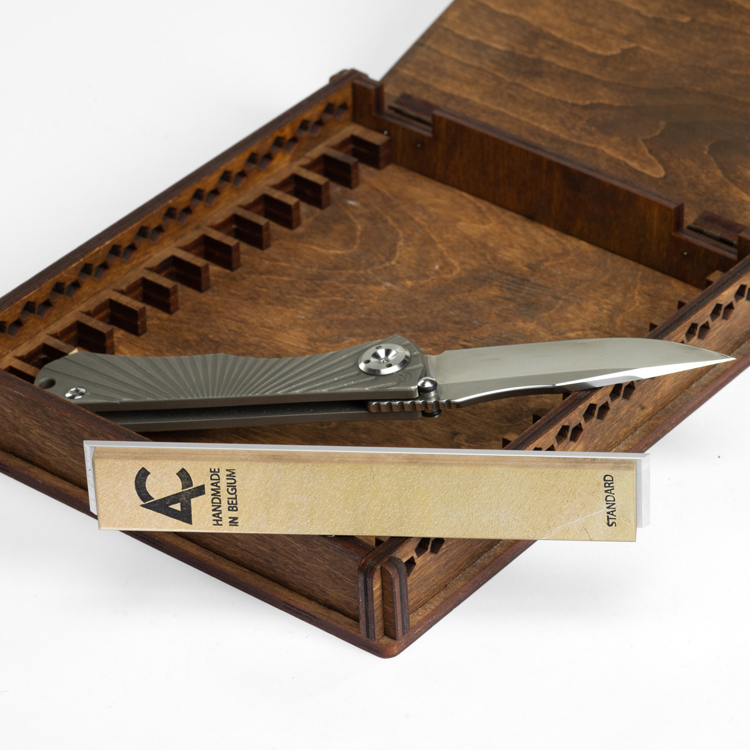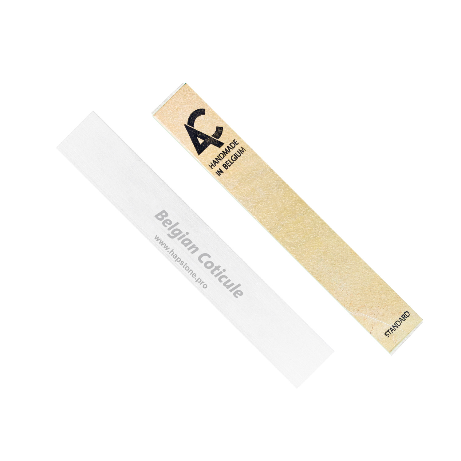 Belgian Coticule Whetstones are used for super finish sharpening on Hapstone  knife sharpeners. Belgian Coticule stones are mounted on high-quality aluminum blanks.Yellow Coticule is mined in the Ardennes mountains in Belgium. Coticule is ultra-fine natural stone with a high garnet content, with estimated grit approximately JIS 8000- JIS 12000 Coticule is one of the most well-known whetstones in the world.Coticule stones are universal and can be used to sharpen knives of any steel.Coticule is preliminarily lapped and does not require lapping after purchase. Coticule should be used with water as a lubricant. All that is required is to wet the Coticule surface. There is no need to immerse the stone. During the sharpening, slurry with garnets is released from the Coticule surface. The more garnets are released, the more abrasive the grinding compound becomes. Try to keep slurry on a stone surface.