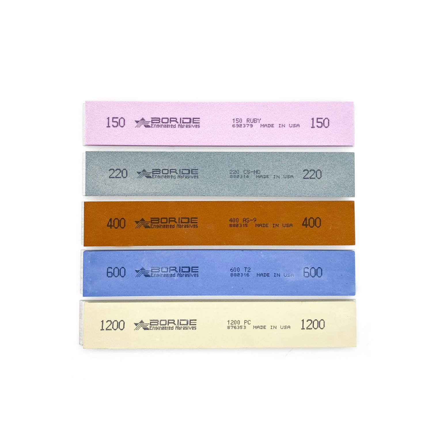 The Boride stone set is assembled from different series and is perfectly suited for sharpening knives made of any type of steel – from soft to the hardest. The set includes 5 stones of various grit sizes, allowing you to cover all stages of sharpening: from coarse grinding to final polishing.
